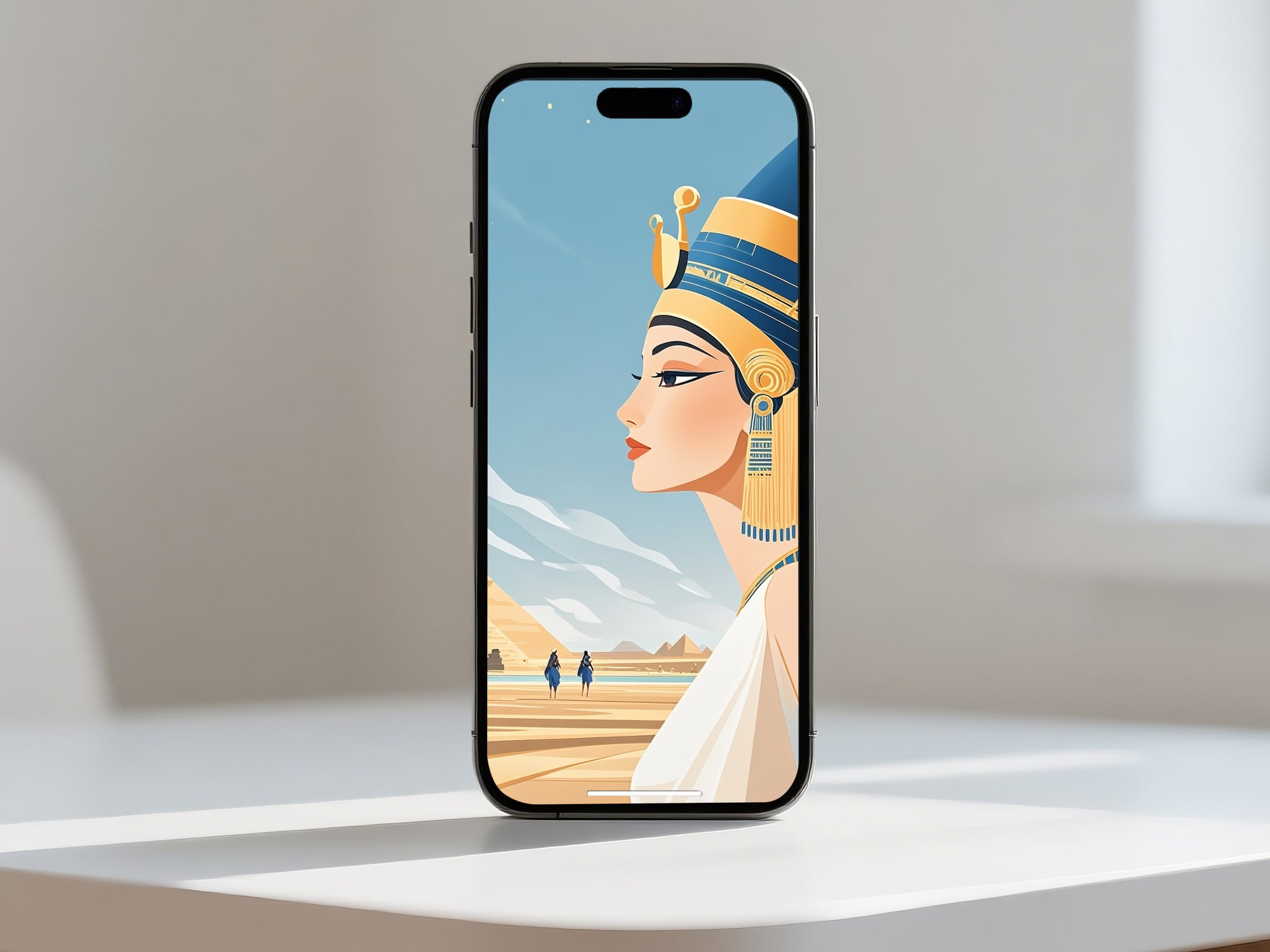 この作品は、古代エジプトの壮大さと女性の気品を美しく融合させた印象的なイラストです。