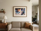 アールヌーボー風のこの作品は、優雅な曲線、複雑なディテール、鮮やかな色彩、ステンドグラスのような効果が特徴で、空間に豊かなエネルギーをもたらす夢のような雰囲気を作り出します。
