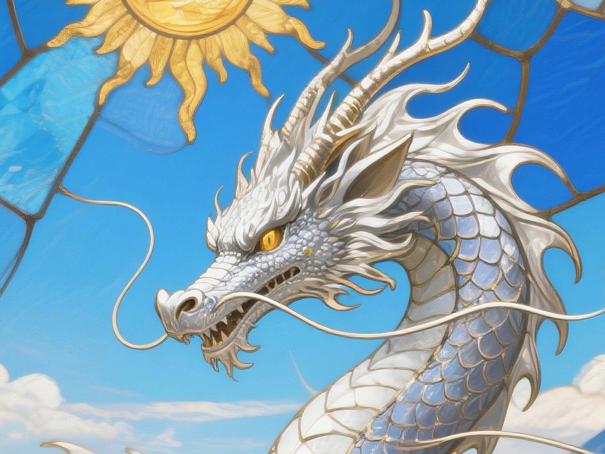 スピリチュアル向上:天とつながる白龍、水晶、青空は霊的成長を後押しご自宅の 東(健康・成長)や南東(財運) に飾ると、風水的にも非常に効果的です。また、パソコンやスマホの壁紙にしても運気アップが期待できます。