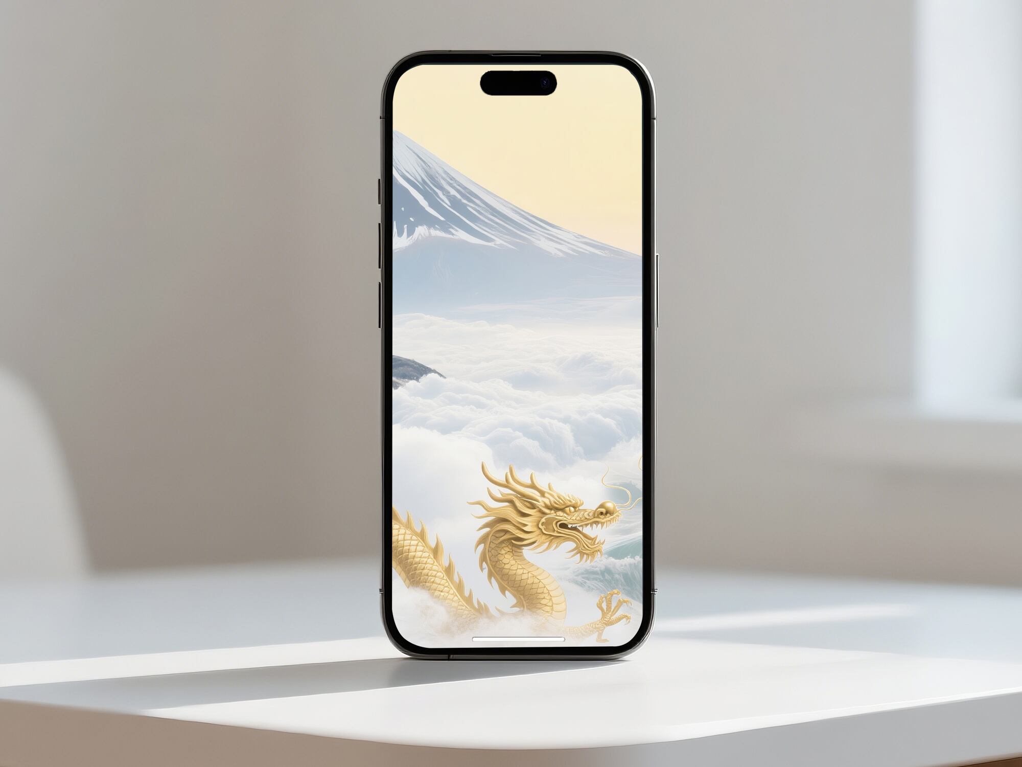 このアートは、「昇る太陽のエネルギーを背に、金龍が富士山の気をまとって現れる構図」であり、以下のような風水的効果があると考えられます: