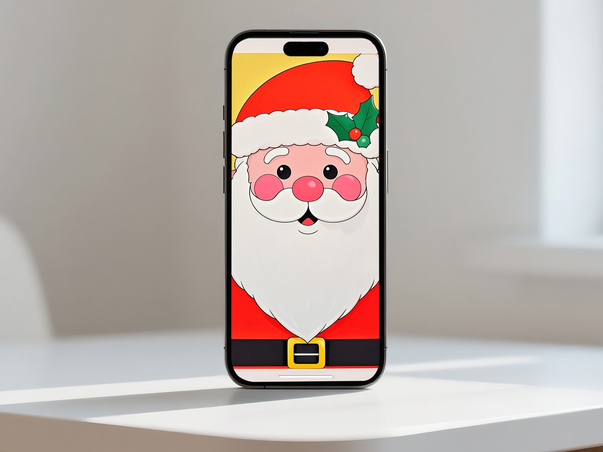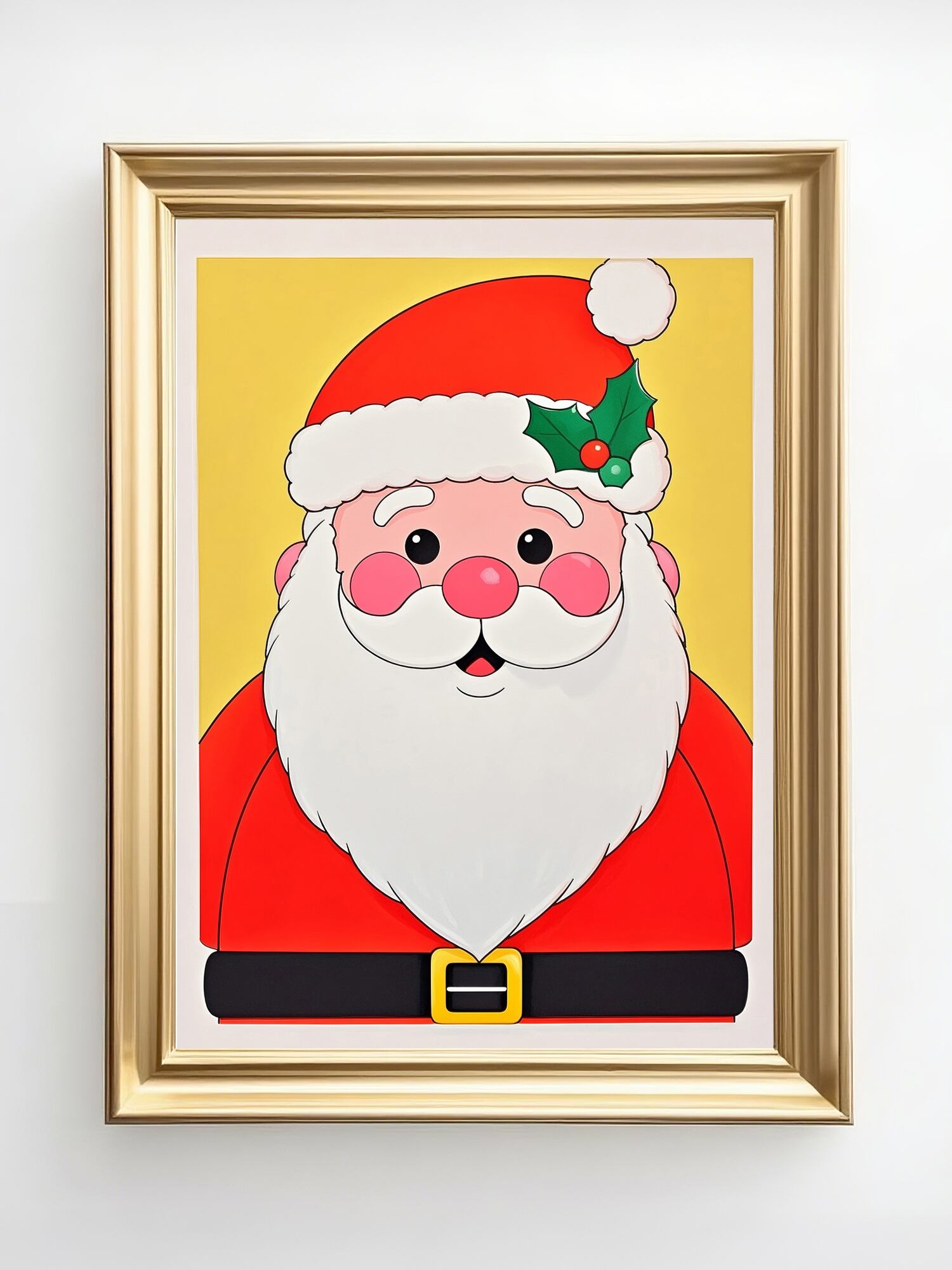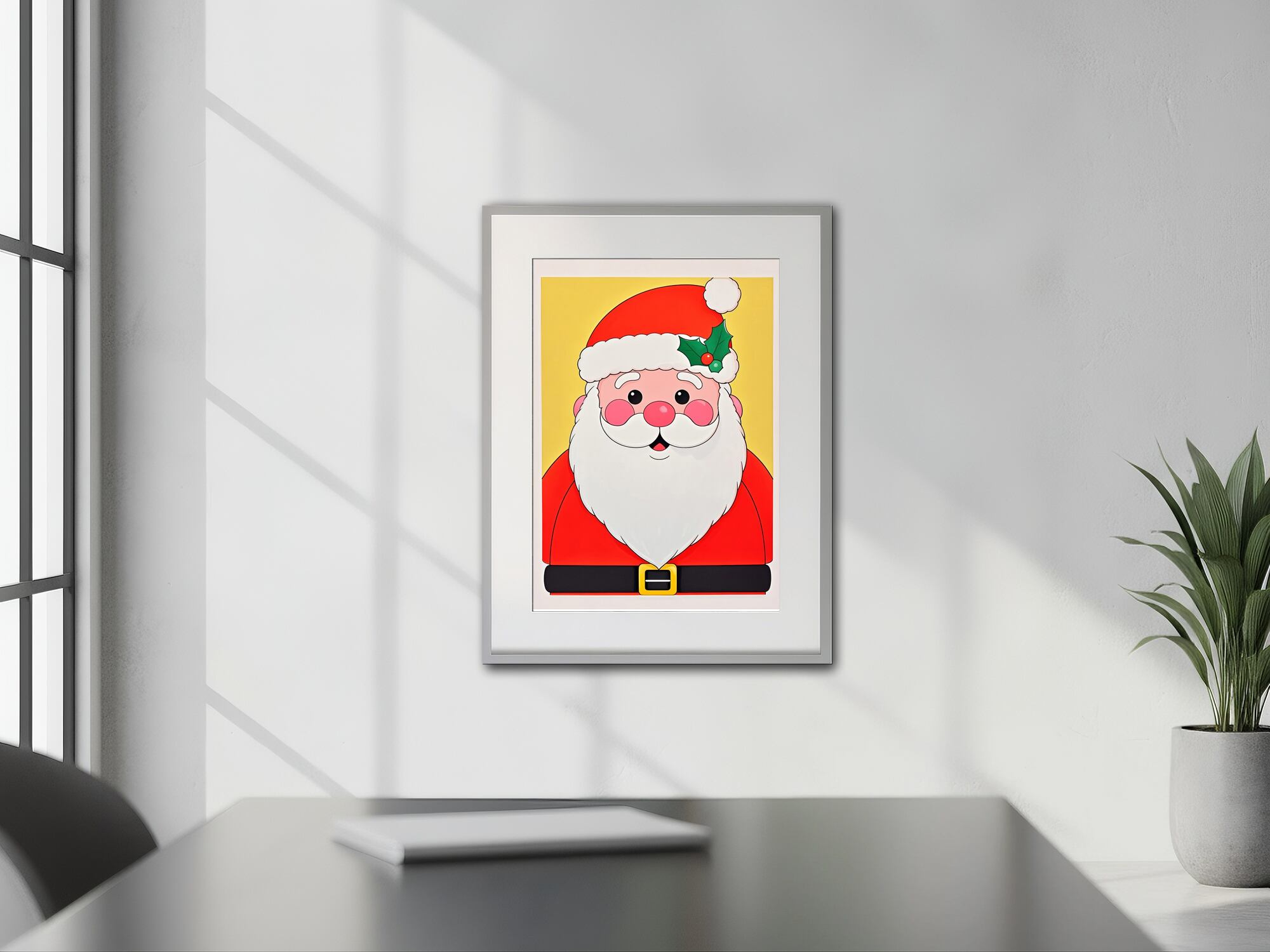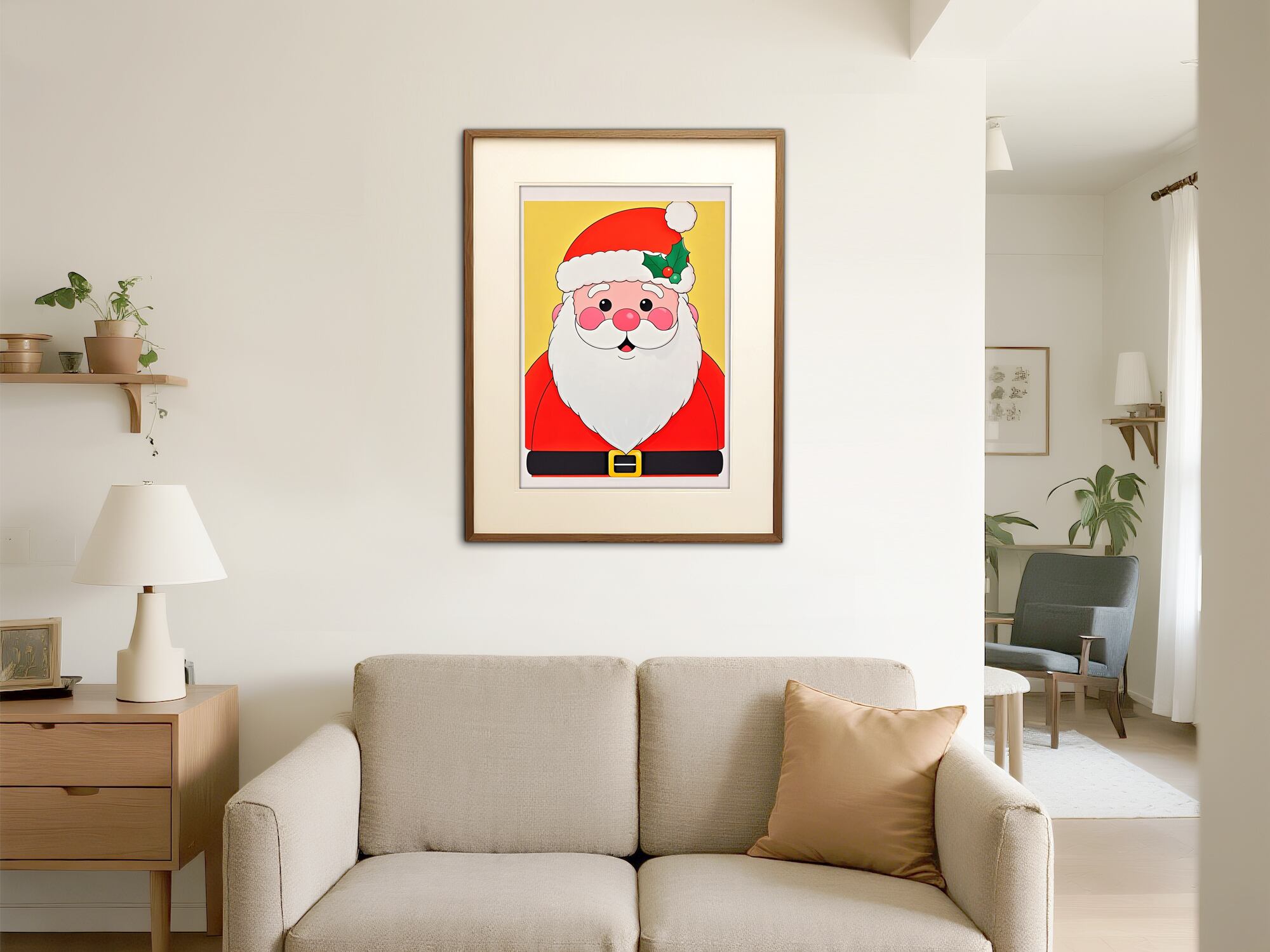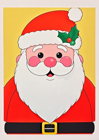 大きな顔が印象的な、シンプルでかわいらしいサンタクロースのイラストです。余白を活かしたデザインで、ミニマルな空間にも自然に溶け込みます。やわらかな表情は見る人にやすらぎを与え、クリスマスの雰囲気づくりにも相性抜群。優しいテイストを好む方へおすすめの一枚です。