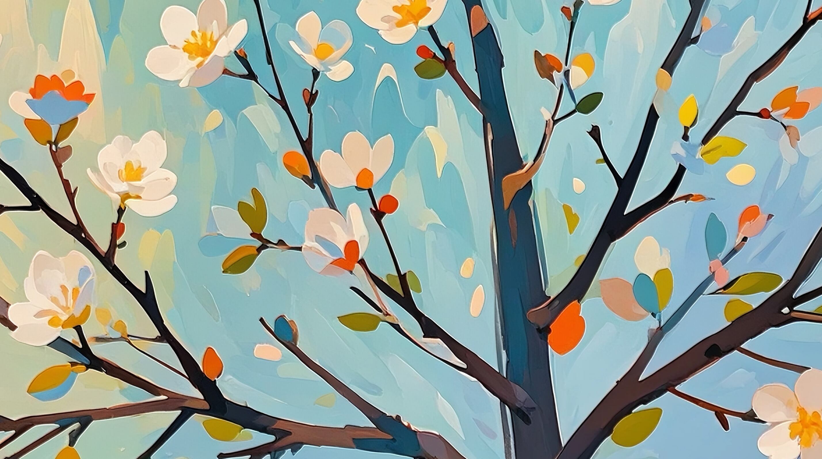 満開に咲き誇る白い花々が空へと伸び、爽やかな春の空気を感じさせる作品です。淡いブルーの背景と繊細な花の描写が、凛とした美しさを演出しています。優雅で静かな雰囲気を持ちながら、季節の変わり目の喜びを感じさせる仕上がり。寝室や書斎など、落ち着いた空間のアクセントにもおすすめです。自然が持つ清らかなエネルギーを届けてくれるアートです。