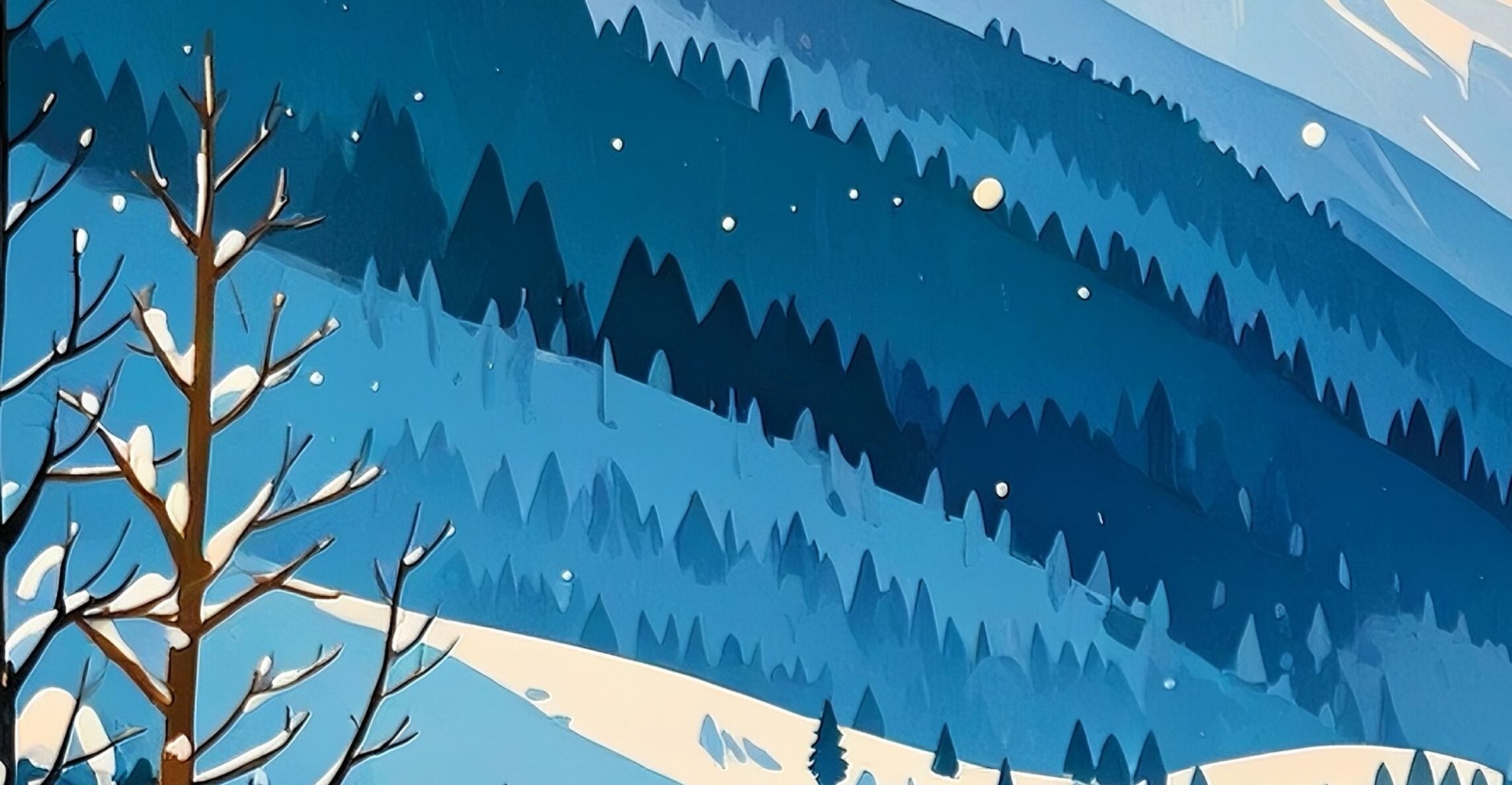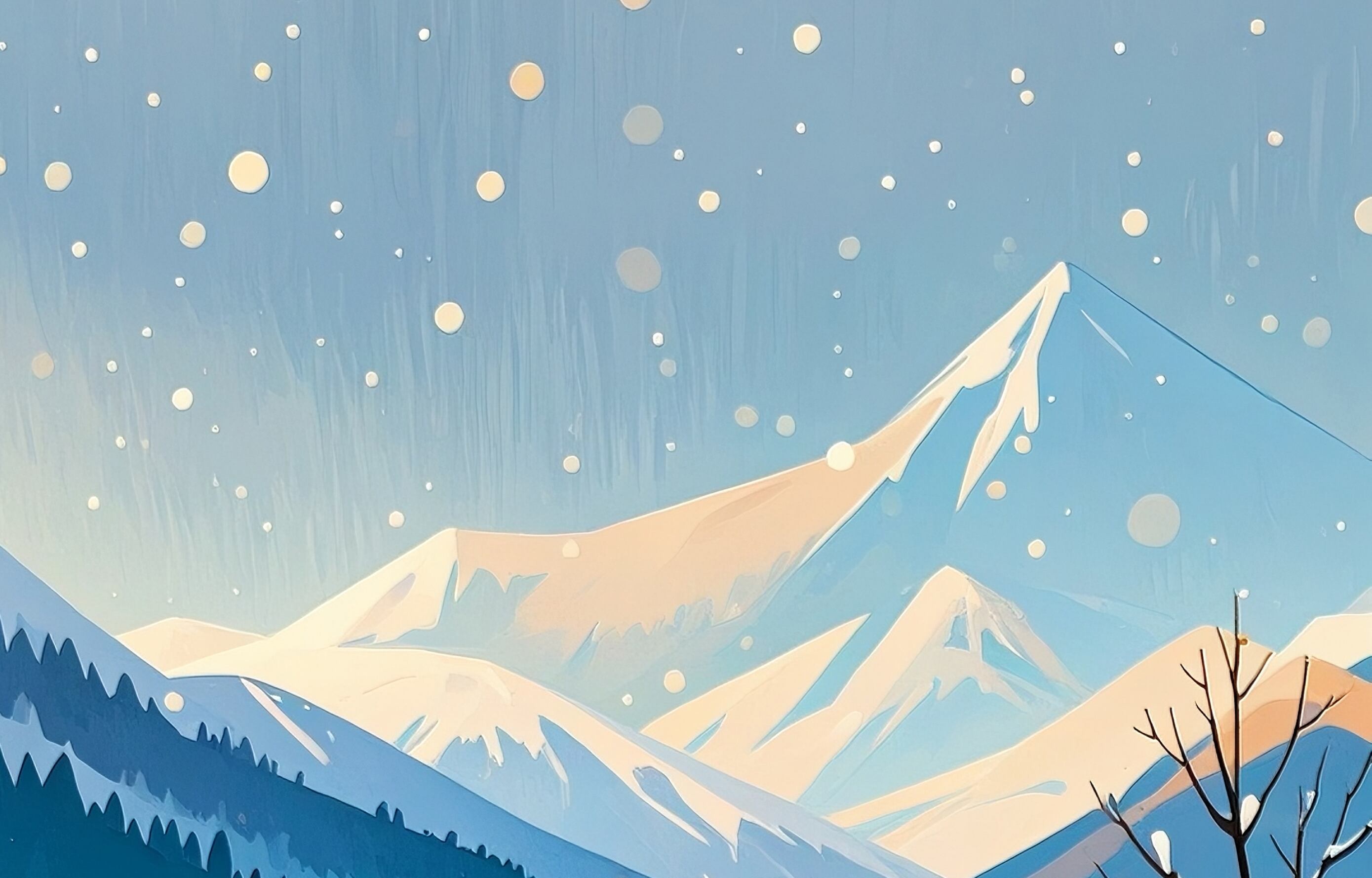 雪に覆われた山麓と、小さく佇む家が心温まる雰囲気を醸し出す冬の風景画です。吹雪の静けさや山の荘厳さが美しく表現され、眺めるだけで物語を感じられます。暖色の窓の光が画面のアクセントとなり、温もりと孤高の美しさが共存する魅力的な作品です。冬のインテリアに季節感と静かなドラマ性を加えたい方に最適のアートです。