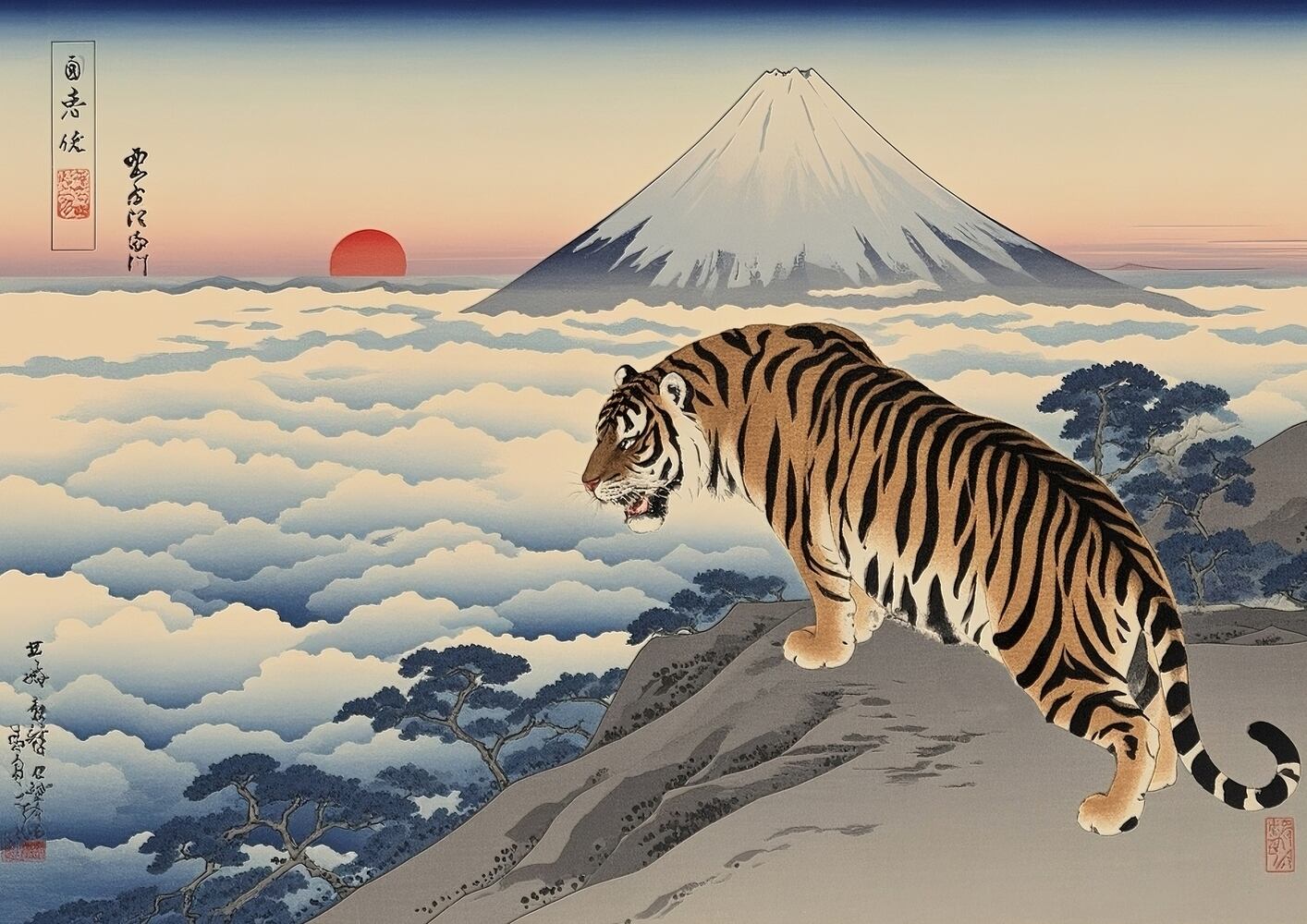 《雲海に立つ虎と富士山》は、